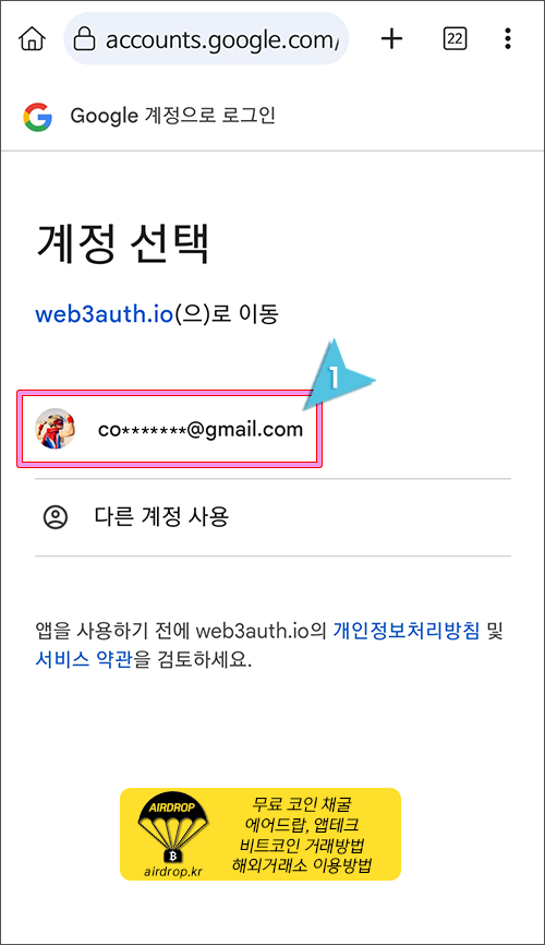3. 이용하려는 자신의 구글 계정을 클릭합니다.