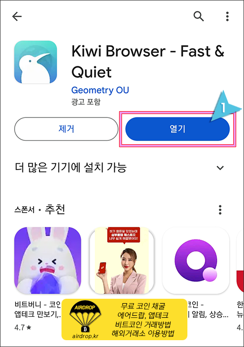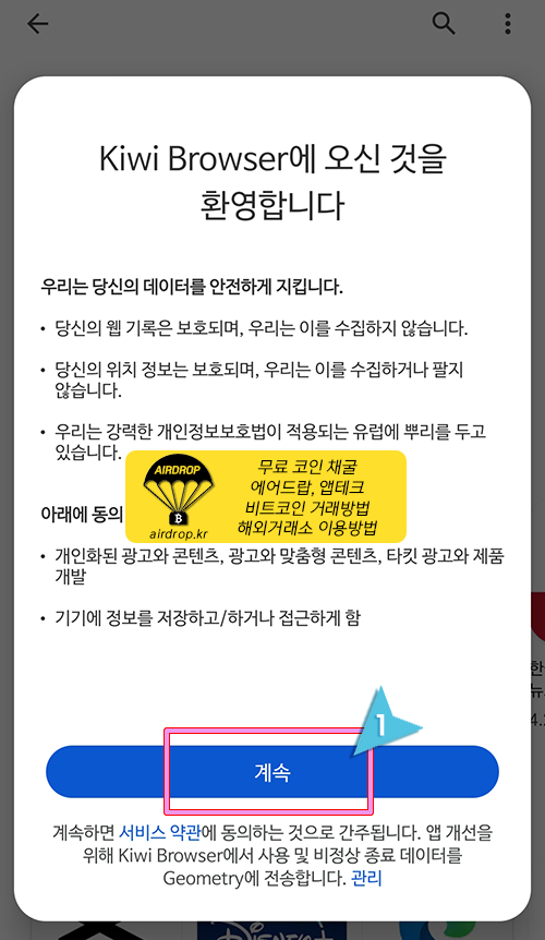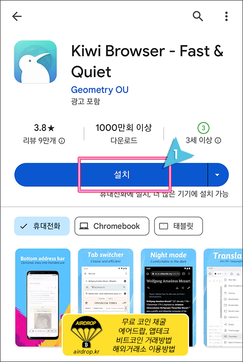 1. 플레이 스토어에서 "Kiwi Browser"를 검색하여 설치합니다.