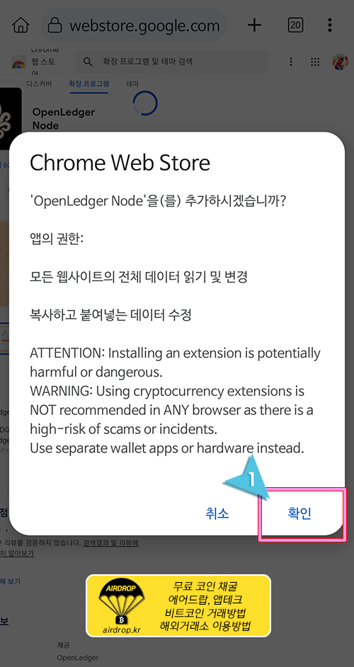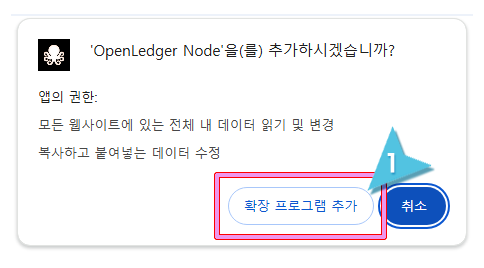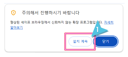 14. 확장 프로그램에 대한 주의 사항 안내입니다. "확인"을 클릭합니다.