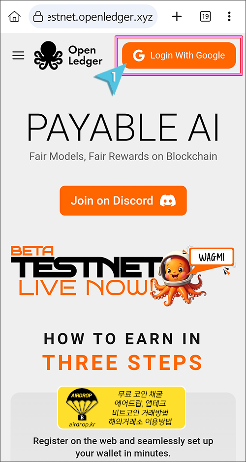 1. 크롬 브라우저에서 아래 링크를 클릭하여 오픈렛저(OpenLedger)에 접속합니다.