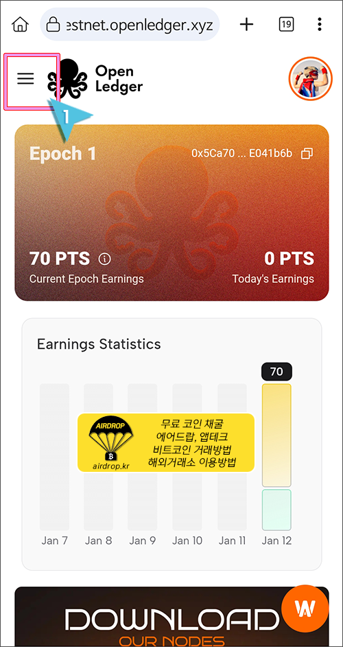 모바일에서 오픈렛저 채굴하는 방법