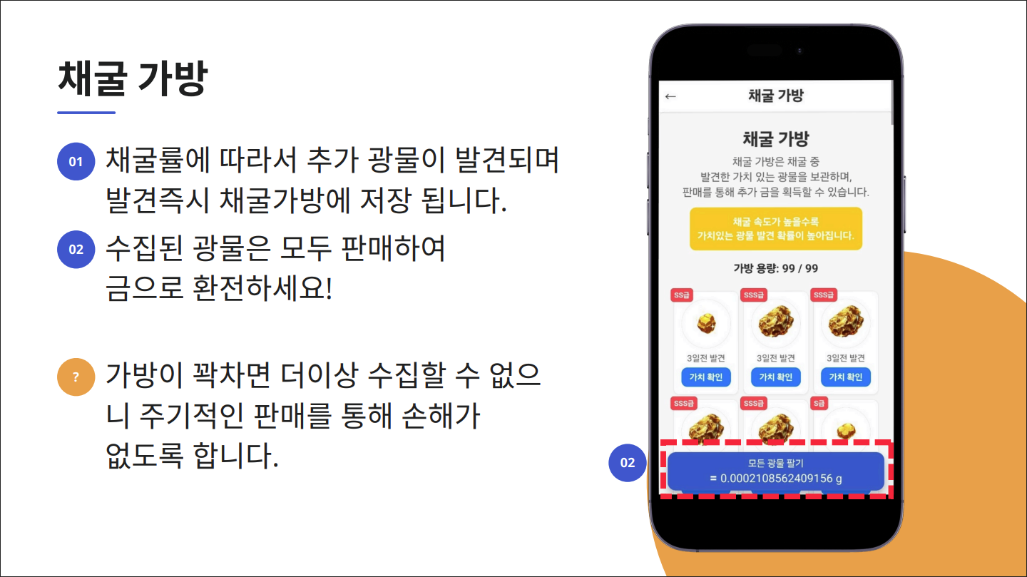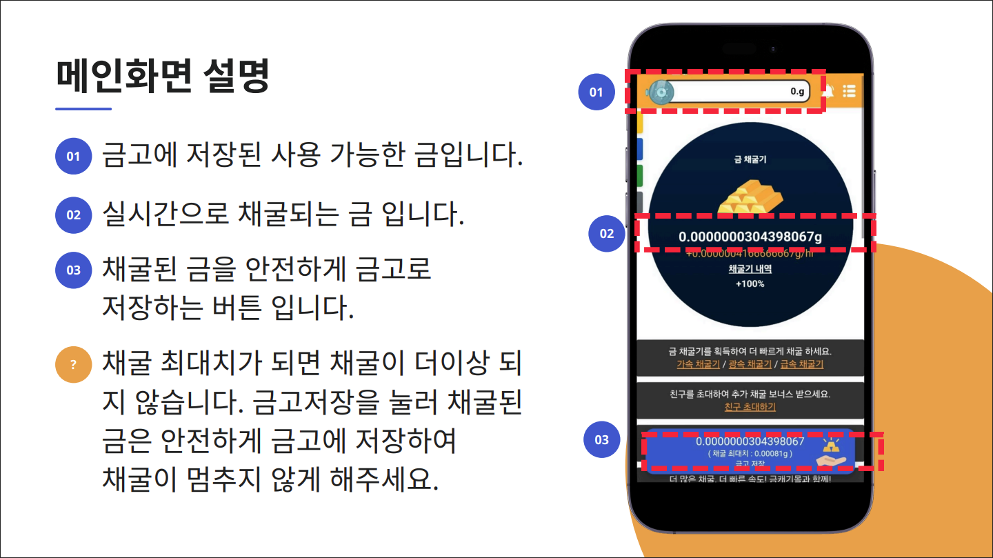 ‘금캐기’의 가장 큰 장점은 **자동으로 포인트(금)**가 쌓이는 ‘방치형 수익 시스템’이에요.