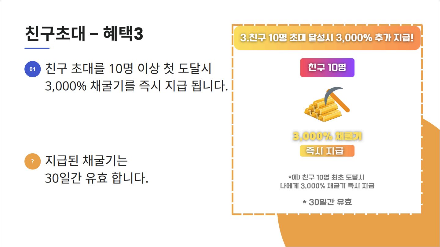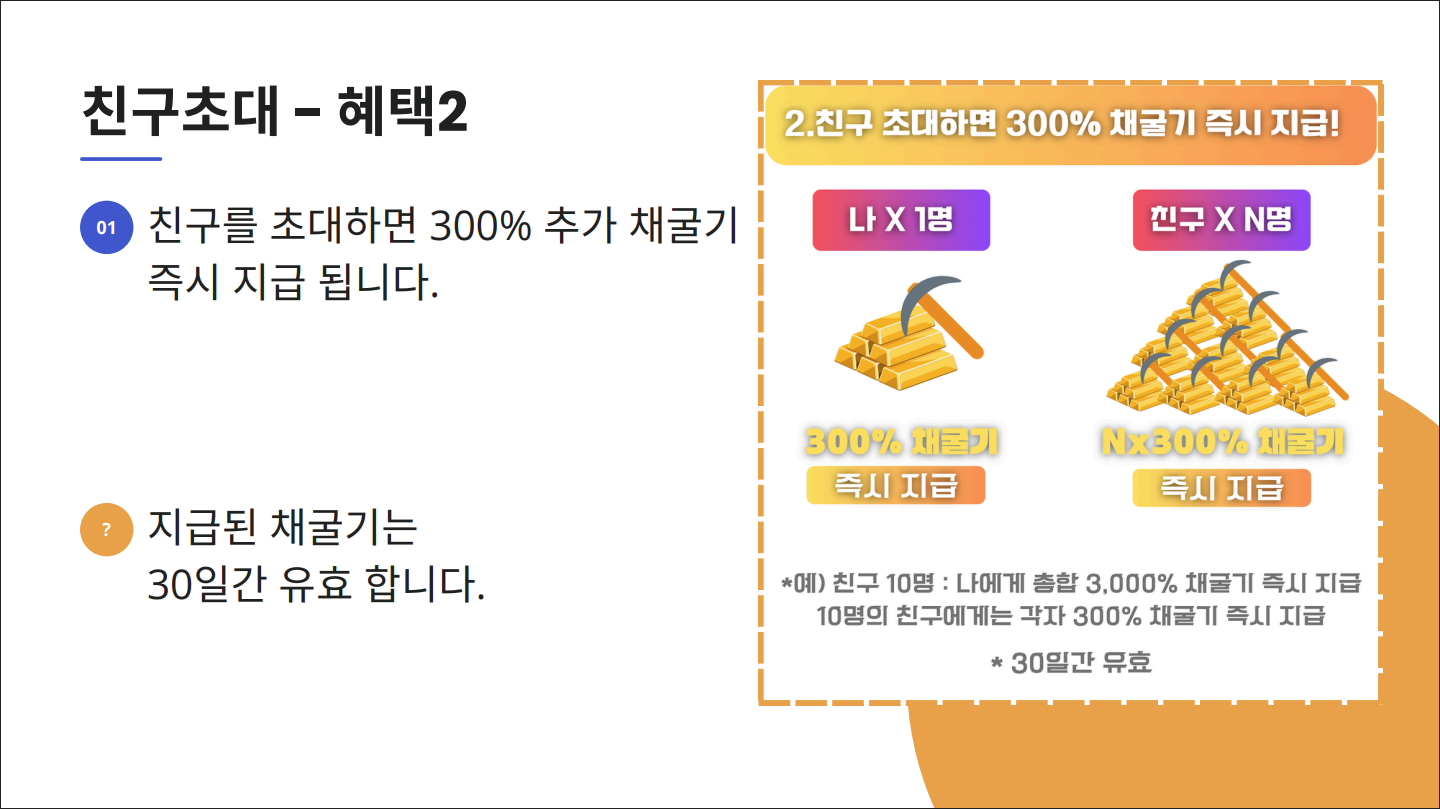 ✅ 2. 추천인 코드 입력으로 황금 채굴 속도 300% UP!