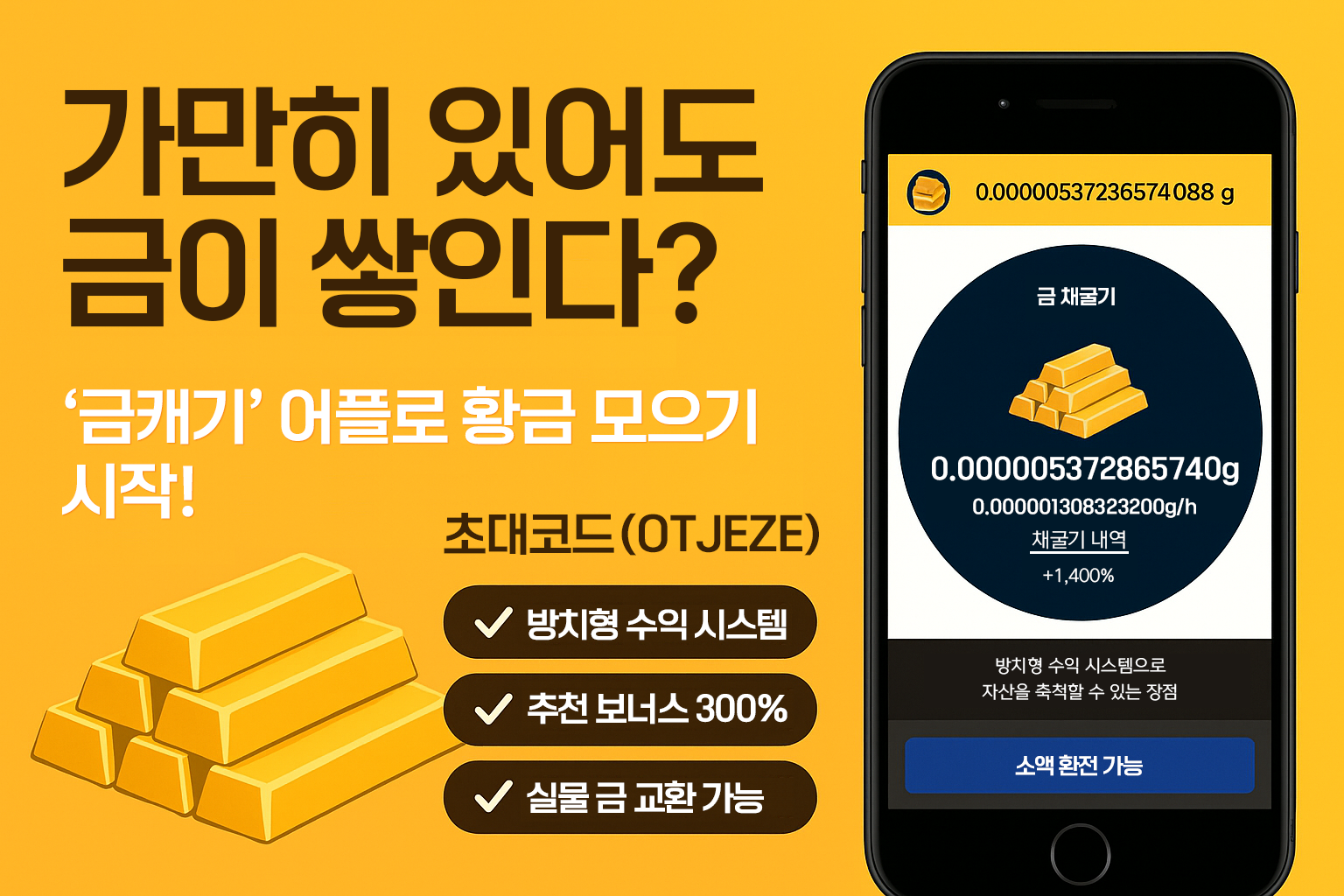 👉 추천인 코드(OTJEZE) 입력 후, 황금 모으기를 시작해보세요!